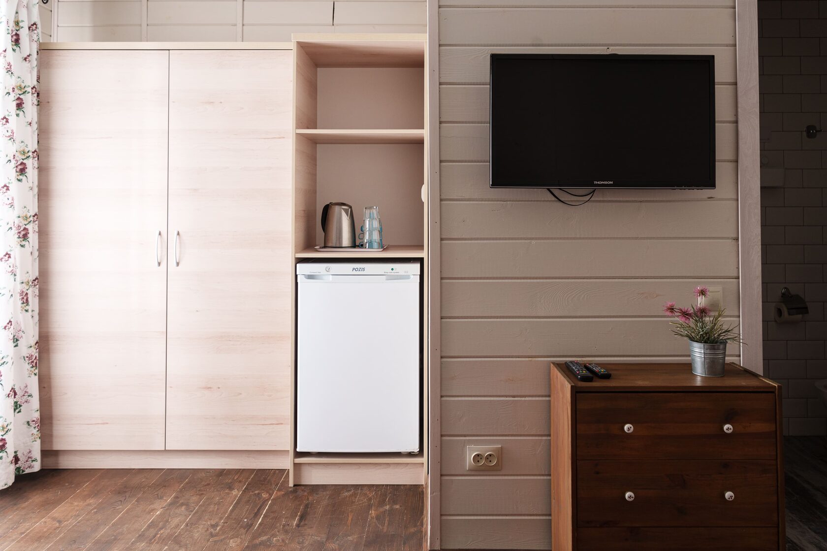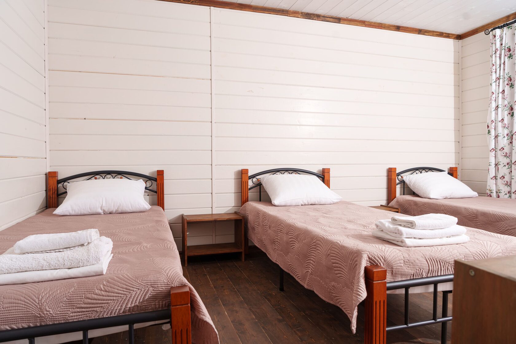 В каждом номере предусмотрены для Вашего удобства кружки и стаканы, чайник, комплект полотенец на каждого гостя, мыло для рук, тапочки и сушилка.