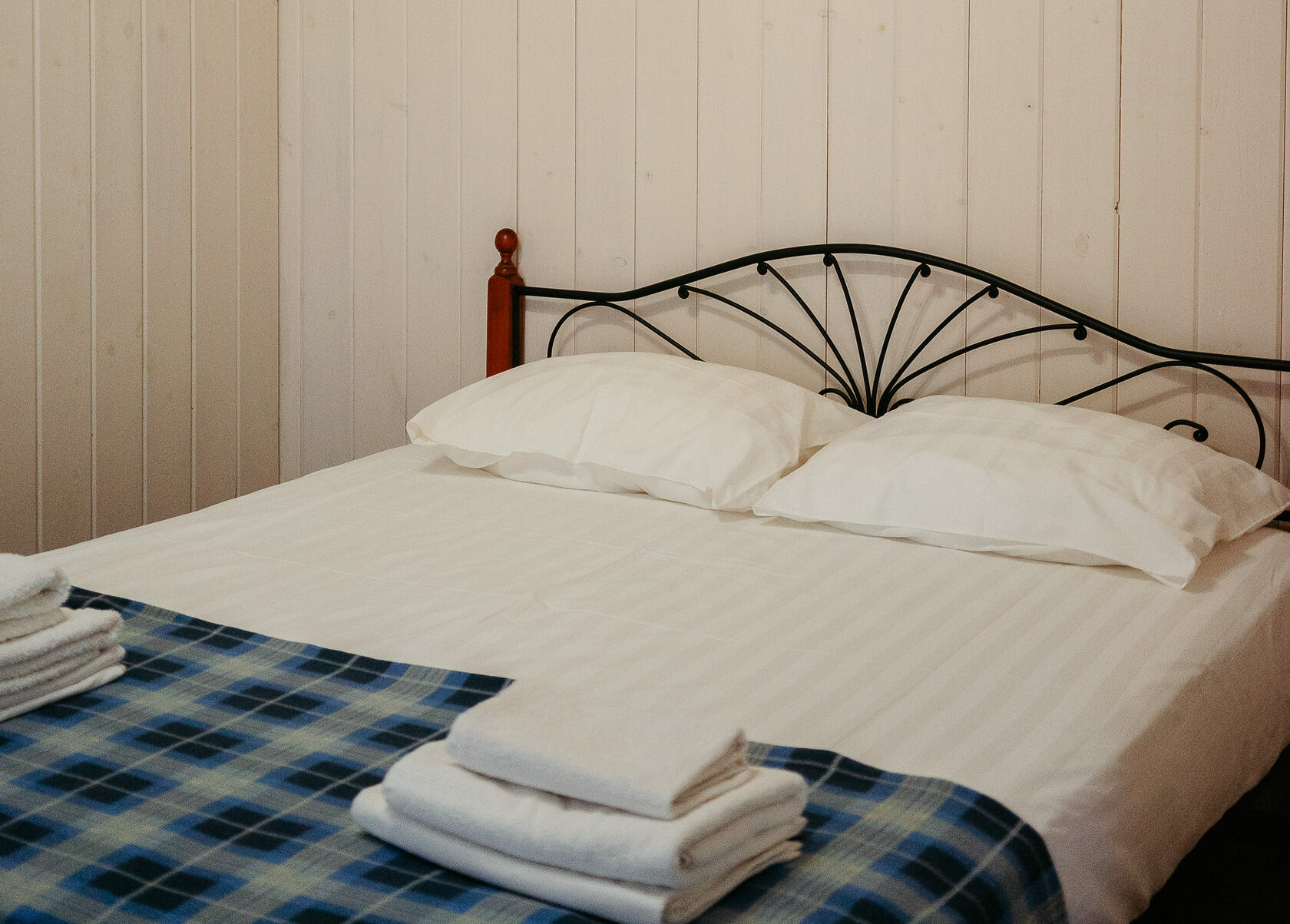 В каждом номере для Вашего удобства предусмотрены кружки и стаканы, комплект полотенец на каждого гостя, мыло для рук, тапочки и сушилка.